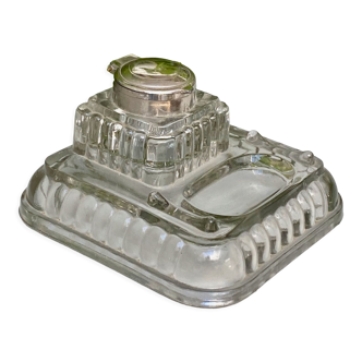 Inkwell in rosewood and glass from the 50s in good condition. Both glass inkwells are removable and they have a rosewood lid.