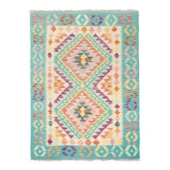 This small Afghan Kilim rug brings a burst of colour and heritage craftsmanship into any space. Handwoven from natural wool and cotton, it showcases a striking central red panel with diamond medallions, framed by tribal geometric motifs in tones of yellow, orange, beige, and light blue. Its compact size and bold palette make it perfect as a statement accent rug in modern or traditional homes. At 78 × 124 cm (2'7" × 4'1"), this rug is ideal for buyers searching for rugs for entryway, rugs for bedroom, or small rugs for living room. Its flatwoven texture makes it lightweight yet durable, while its vibrant design adds warmth and character to any interior. 🧵 Key Features. Design: Geometric, Tribal, Zig-Zag, Folk Art. Style: Flatwoven Kilim, Handmade, Contemporary Afghan. Materials: Wool|Cotton. Colours: Red, Beige, Yellow, Orange, Light Blue, Multicolour accents. Size: 78 × 124 cm|2'7" × 4'1" Condition: Excellent – New (2017–2025) Origin: Afghanistan / Central Asia. Weight: Lightweight (Up to 5 kg) Shape: Rectangle. Coverage: Small – Under 4 sqm. 🏡 Perfect For. Entryway rug to welcome warmth and colour. Bedroom rug as a soft accent beside the bed. Living room rug for layering with larger carpets. Kitchen rug for rustic or bohemian charm. Ideal for buyers who love tribal, boho, or eclectic interiors. 🗺️ Origin & Era. Handwoven in Central Asia between 2017–2025, this kilim reflects tribal weaving traditions passed through generations. Its bold palette and compact size make it a functional collectible as well as a decorative treasure.