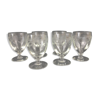 6 50's glasses chiseled. Diameter 6.5 cm and height 13 cm.