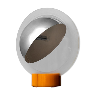 Rare beautiful french table lamp design by jean-pierre alary, france. We have requested information for this beautiful lamp with the info on the sticker. The lamp is made of cast glass and secured with a chrome knob. A limited number of lamps were made, the family estimates about 200 pieces. Made in the years 1984-1987 we have the information from the children of the designer. In france. So if you want something special, this is your chance. The metal has signs of use.