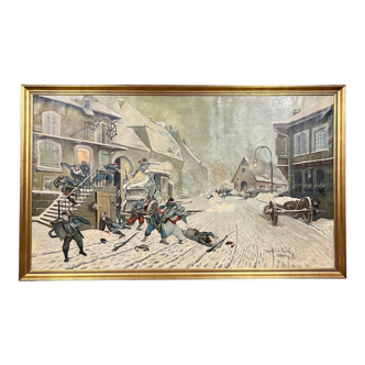 The automobile during the war: after georges bertin scott / removal of the wounded in an aid station in 1918 oil on canvas very beautiful frame signature lower left h60 X 75 X 8.
