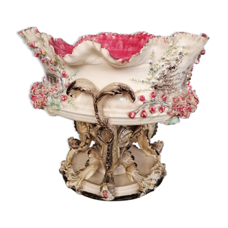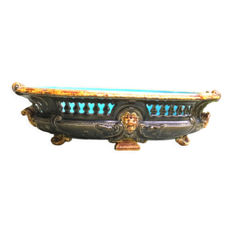 Gien's black-bottomed renaissance ceramic decorator, a chiching at the collar and an accident at the bottom of the planter. Length: 38cm. Width: 23cm. Height: 14cm.