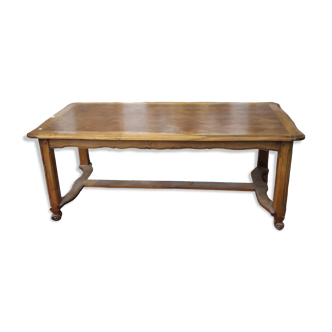 Antique farmhouse table, late 19th century. It is made of solid beech. It has been completely stripped. The tabletop has some pitting, but it has been fully treated. The top is removable.