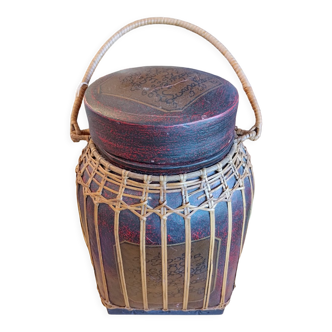 Low stool in vintage rattan fully original. Visible state in photos.