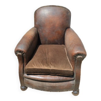 Rare and imposing art deco armchair - 1920s - carved walnut decorated with flowers and liseret resting on four foot balls. The chair has been completely retaped by a professional upholsterer "boutique atelier and compagnie" located at the arrow in sarthe - the fabric is a turquoise blue velvet. To be noted: some slight time-related scratches on the front of the armrests - three feet balls out of four have a photo cf slit, the chair retains its stability. Dimensions: total height: 80 cm X total width: 74 cm X total depth: 65 cm. Seated height: 39.5 cm X seated width: 52 cm X seated depth: 46 cm.
