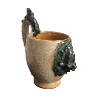 4 speckled two-tone lion head ceramic bowls – Émile Henry style – vintage stoneware made in France