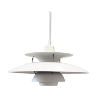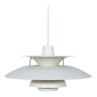 Country: Denmark Year: 1970 Description: Beautiful vintage white Danish design pendant lamp that resembles the lamps of Poul Henningsen and Louis Poulsen. This lamp has a diameter of 42 cm and is about 23 cm high. Condition: The lamp is in good vintage condition and working properly.