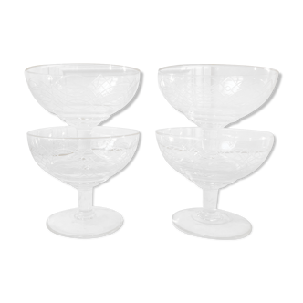 Set of 7 dessert bowls (fruit, ice cream) in grooved molded glass. Excellent condition.