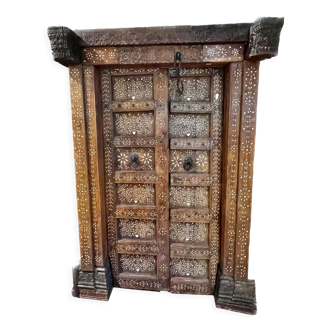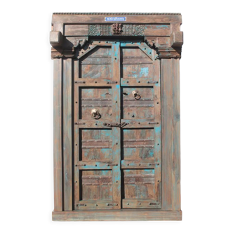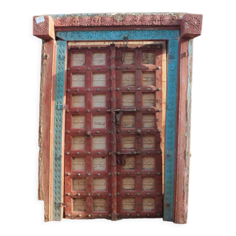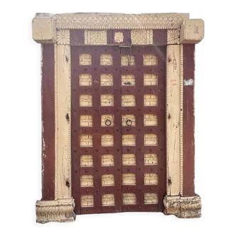 Very nice mirror in old wooden frame. The frame was part of an ancient wooden gate from rajasthan.