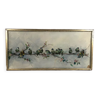 Painted metal biscuit tin, on 4 legs.