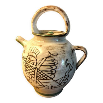 Vallauris gargoulette ceramic acting as a piggy bank. Good condition. Dimensions: 10 and 17.5 cm.