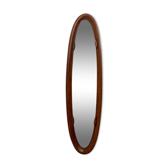 Large oval rattan mirror from the 60s. Handmade of fayl billot 52. Come from an old hair salon. Very egregious traces of time. Size. Height 124 cm. Width 40 cm. Depth 4 cm.