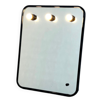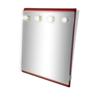 Red mirror with integrated light bulbs by Metalplastica, 1970