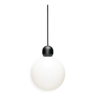 Vintage pendant light in the style of fontana art very good condition may show slight signs of wear very minimal length (cm): 20 cm depth: 20 cm diameter of the base plate: 10 cm height of the base plate: 6 cm cable length: 90 cm diameter of the glass globe: 20 cm adjustable height: from 21 to 117 cm sold individually but two available.