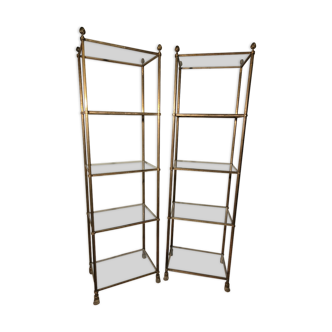 Single storey shelves in chrome and vintage brass 1970s. 7 lightly smoked glass shelves. Good general condition.