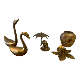 Authentic and ancient trio of brass geese. Dimensions: 25, 22 and 18cm high. Condition: good condition (see photos) Prices for 3pce.