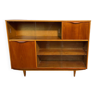 Steel sideboard in a row of the strafor brand around 1960. Has 4 drawers and a double sliding glass door. Large storage volume, old office furniture. Industrial style vintage loft spirit. Some traces of time (see photos) but remains in a very good state for its age. One of the windows has a small shine, but is not visible when the windows are closed since it is located in the groove. Dimensions h88 d46 l130 cm. Drawer width: 40cm height: 14cm. Length glazed part: 78cm.