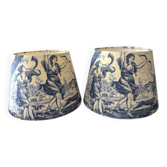 Pair of old lampshades. Dance décor in brittany. Height 12 cm. Lands directly on the bulb. (e14, little nerve). Low size 15 cm, high 10 cm.