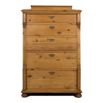 Industrial pinewood filing cabinet with big drawers. In very good condition. Original color and patina.
