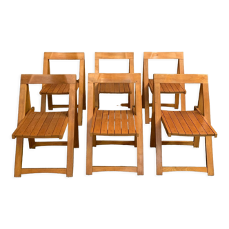 Suite of 11 folding chairs with canning 1980 wooden surround