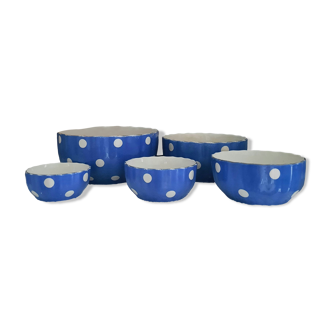 Set of 8 vintage blue egg cups with white polka dots. Perfect condition.