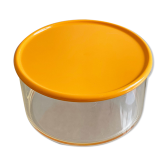 Rare designer coffee table in tempered glass italy 70 in 3 distinct parts to assemble: - 2 half-moon curved glass legs - 1 round beveled glass top diameter 57 all in perfect condition this coffee table offers the possibility of putting whatever you want wants inside lighting/decor...