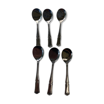Set of 17 silver-plated spoons with raised floral and plant motifs. In very good condition. A beautiful set full of charm for dessert time.
