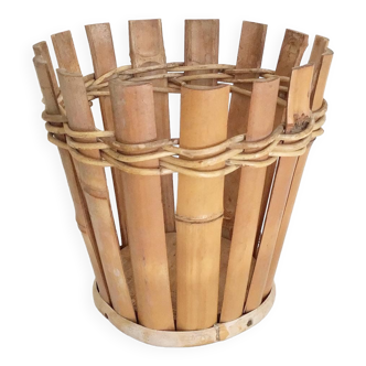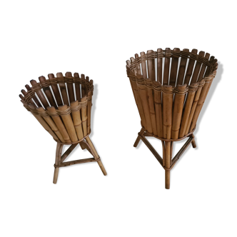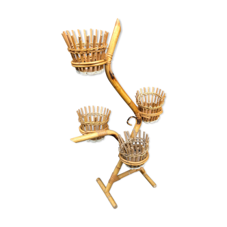 Old rattan plant holder dating from the 60s or so. It is composed of a low storage space, and five bamboo and rattan pot covers whose diameter is 20 cm. Very good general condition. Careful packaging for transport.