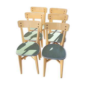Beautiful series of 24 bistro chairs dating from the middle of the twentieth century, not common model with light and clean lines. A nice oval-shaped backrest and curved uprights define the very particular design of this bistro chair. Solid light and stable, this lot will easily find its place in a restaurant, a bar, a place of life or events, a beautiful soft shade and a patina that makes this lot unique and alive. Let yourself be seduced by the look of so much and create a unique atmosphere.