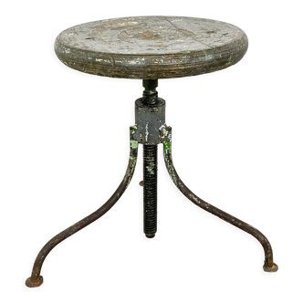Old swivel piano stool by Thonet. The piano stool has four steam-bent legs with a bentwood ring for stability. The height of the stool can be adjusted from approximately 45 cm to 63 cm. The canework is in very good condition for its age, just a bit broken in one place. It was completely sanded and waxed with a single-color wax from Liberon.