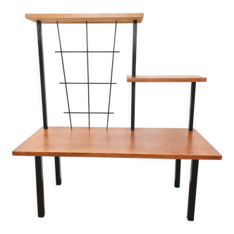 A large flowerbed from the 1960s. In original and good condition. There are water marks on two of the countertops. In general, the flower bed is very attractive. Very good quality of solid wood, natural veneer and brass. Cool styling.
