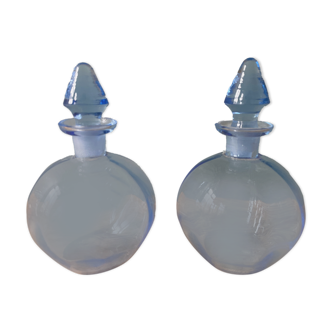 Liquor decanter with a long neck in slightly engraved glass, from the portieux - vosges crystal factory - with a nice pointed cap. Golden border on the edge of the collar and around the cap. In very good condition without cracks or shine. The golden border is just a little worn. Height with cap: 28cm - without cap: 20cm. Bottom diameter: 8cm.
