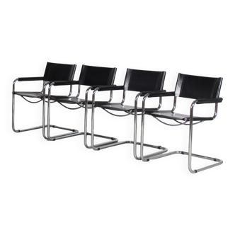 Series of 6 chairs in wood-coloured metal, wooden structure and canning. Wear due to time and age of chairs wear on metal, seated height 44cm.