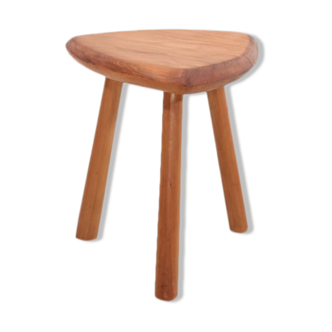 This brutalist stool with tripod base was once used to sit on during milking. Today it is used as a side table or bedside table. The stool has been carefully sanded and waxed colorless. Half-moon seat. Seat dimensions 25x19cm.