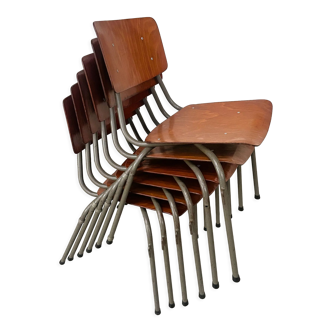 Set of 6 chairs signed by Robert Mallet Stevens. International ecart reissue purchased in 1989. All 6 bear the RMS signature on the underside. They are in good condition and very solid. Black in color, they are patinated by the years, and some have a slight attack of rust: see photos of the 6 different seats.
