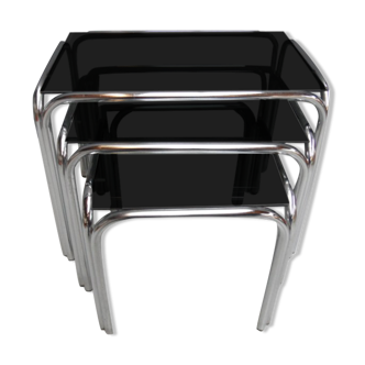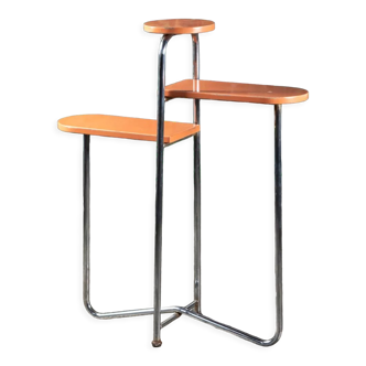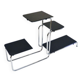 1970s step stool, formica with gold trim in very good condition. 93 cm including the backrest, seat height 60 cm. If you prefer to send it by cocolis, please do not hesitate to contact me.