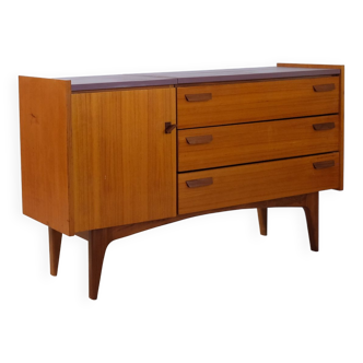 Before being put on sale Vintage sideboard from the 50s or 60s in solid wood, no veneer, 2 drawers and a cupboard with a door and a shelf, very stable compass feet, good drawer slides, solid. Very good condition despite a little wear from the past, visible in the photos, but still very beautiful for its 70 years, original handles, lock and key, can be used as a TV stand. Size 115 / 40 h 63.