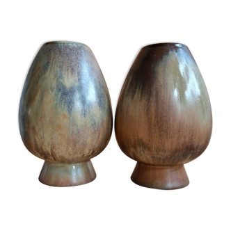 Clement massier (1844–1917) Enamelled ceramic vase, circa 1890, flammed color from beige to brown. Signed under the base in hollow. Clement massier golfe juan (a.m) Very good condition. Height 14 cm ~ width 8 cm. Neck diameter 4 cm. Base diameter 6 cm.