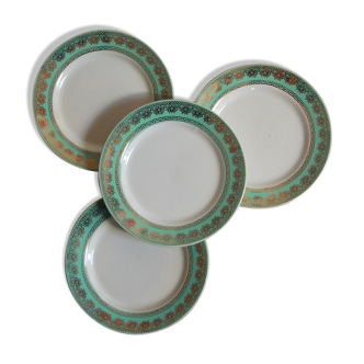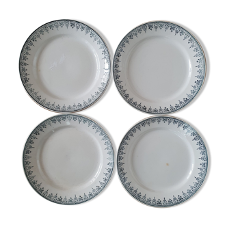 3 flat plates made of fine earthenware. Iron earth. "vezelay" model, blue décor. Gien's faïencerie. Diameter: 23.3 cm. * Set of 3 antique flat plates, french transferware. Blue "vezelay" decor. Gien pottery. Diameter: 23.3 cm. Ref858.