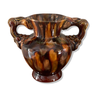Pretty germany vase with handles. It will add some pep to your decor with its pretty turquoise color. No defects to report for this vase, apart from the lack of flowers! Careful shipping.