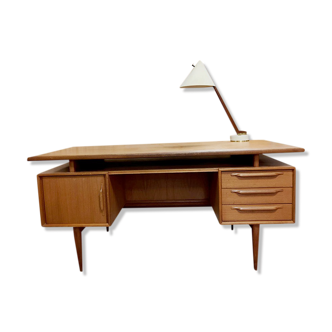 Metal desk 50s with box of drawers closed by key. Vynil green leather - wood top and glass adds and removable.