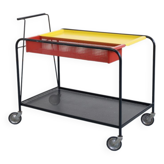 Office drawer unit from the USM Haller modular system, developed by Paul Schärer and Fritz Haller from the 1960s and produced in Switzerland. Structure made of chrome-plated steel tubes assembled with USM's iconic spherical connectors. It includes a top drawer and an open lower compartment, providing simple and functional storage. In very good condition. Dimensions: W: 42 cm. D: 53 cm. H: 57 cm.