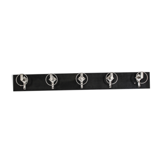 Metal school coat rack has 10 patères. Width 150cm.