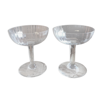 4 crystal champagne glasses with hollow foot. Height: 11.8. Diameter: 9.3.