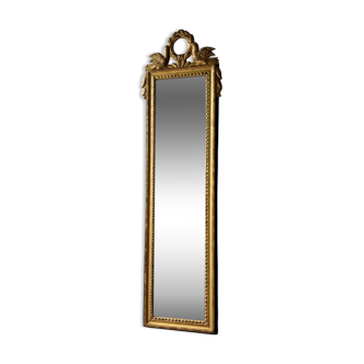 Pretty rectangular golden mirror. Beautiful patina, this elegant golden mirror will fit into any interior. A fastener behind the mirror. Good general condition, note a slight crack on the right side of the mirror.