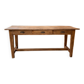Rustic country style table with two drawers. Made of Baltic pine, Latvia, circa 1930s. The table is of very solid construction, stable and in good antique condition. Dimensions: height 79 cm / 31.1 in; width 161 cm / 63.38 in; depth 81 cm / 31.88 in. Wear consistent with age and use. The table is one piece and is of very solid construction, stable and in good antique condition. Please expect dents, marks and scratches due to its age and use.