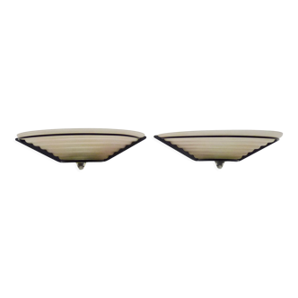 Pair of vintage glass and brass wall lights, France, 1960s