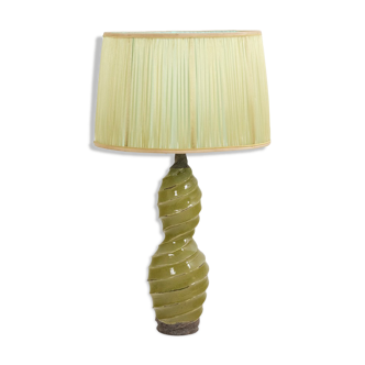 Alabaster lamp, raffia lampshade, 60s. Total height: 33 cm. Base, height: 15 cm, diameter: 8.5 cm. Lampshade, height: 18.5 cm, diameter: 20 cm. Good condition.