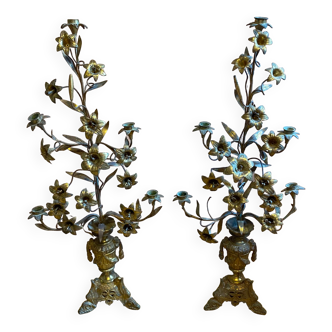 This high-quality Florentine hand-crafted table or floor lamp was manufactured at the workshop of Hans Kögl in Germany during the 1960s. The floral decor lamp is made from gilded metal. It has a stable cube-shaped base with a bamboo effect trim. The lamp is in very good all original condition. Additional measurement: base depth/width: 25 cm.