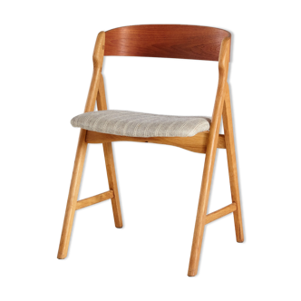 Set of four dining chairs produced in Denmark in the 1960s. Beech frame, teak backrest, fabric upholstered seats (chairs can be reupholstered in fabric, leather, or velvet). Excellent condition, very stable with minimal signs of wear consistent with vintage condition. 20816